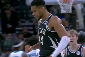 GIF-字母哥一抢三补篮打进还加罚!