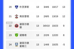 上赛季从英超降级的三支球队无一在附加赛区,伊普斯维奇少赛1轮位列第9,莱斯特城仅第14,南安普顿更是差点掉进降级区,目前位列第21。