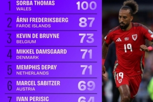 体育资讯11月20日讯 本届世欧预小组赛已经告一段落,squakwa也统计了本届赛事进入禁区次数情况,威尔士边锋索尔巴·托马斯领跑。