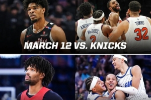 3月13日,尼克斯客场114-113加时战胜开拓者,米卡尔·布里奇斯完成弧顶干拔三分压哨绝杀。