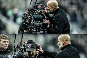 体育资讯11月23日讯 凌晨英超,曼城客场1-2不敌纽卡,赛后瓜迪奥拉被拍到与一名摄影师交流。