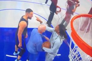 GIF-莫兰特用手指克莱面部,被克莱一巴掌打开,双方险些爆发冲突!