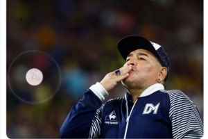 2020年11月25日,马拉多纳因病离世,今天是他去世五周年纪念日,阿根廷媒体TYC社媒晒出马拉多纳的照片,配文:“又一个悲伤的11月25日,迭戈,你离开我们已经5年了,我们每天都在想念你。向天堂致吻。”