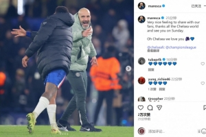 切尔西主帅马雷斯卡社媒晒照庆祝胜利,配文:“与我们的球迷共同分享胜利的喜悦,这种感觉太棒了,感谢整个切尔西大家庭,周日见。切尔西,我们深爱着你(歌词)!”