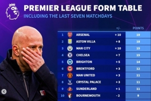 体育资讯11月27日讯 德转列英超各队最近7轮联赛得分,阿森纳19分居首,维拉、曼城列二三位。利物浦仅高于狼队,排在倒数第二。