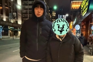 杨瀚森随队来到多伦多,一位加拿大网友在街头偶遇小杨,并晒出合照。