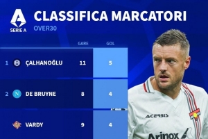 本赛季意甲年龄30+球员射手榜: