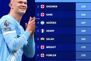 体育资讯12月03日讯 曼城vs富勒姆第17分钟,哈兰德破门,这是他生涯英超百球!哈兰德成为史上最快达成英超百球的球员!