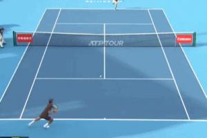 今年中网首轮对阵卡佐的比赛中,商竣程打出了网前背后击球衔接正手暴力制胜分的精彩表现。