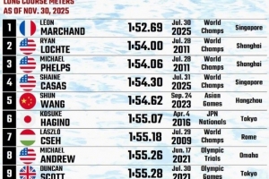 体育资讯12月4日日讯 据知名游泳媒体SwimSwam统计,在200米混合泳项目历史最快总排名中,汪顺1分54秒62的成绩排名历史最快第五。