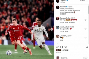 此役维尔茨为利物浦首发出战,送出5记关键传球,赛后他在社交媒体上晒出比赛照片,并写道:“精彩的表现,感谢你们在安菲尔德营造的非凡氛围!”