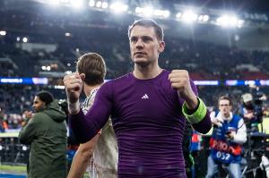 体育资讯11月05日讯 凌晨欧冠拜仁客场2-1战胜巴黎,本场比赛39岁的诺伊尔贡献8次扑救被评为全场最佳,帮助拜仁取得胜利。