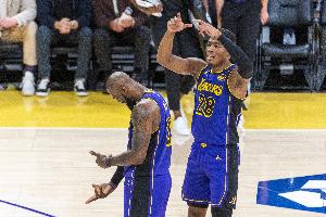 本场比赛最后时刻,詹姆斯助攻八村压哨三分绝杀,连续1297场上双纪录终结。