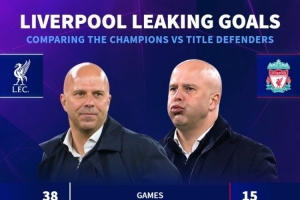 体育资讯12月7日讯 英超第15轮比赛,利物浦客场3-3战平利兹联。德国转会市场统计了利物浦上赛季、本赛季的英超丢球数据,并做出对比。
