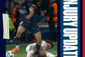 在巴黎对阵拜仁的比赛中,阿什拉夫因小腿受伤被迫离场。