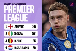 体育资讯12月15日讯 英超第16轮比赛,帕尔默复出破门,帮助切尔西主场2-0击败埃弗顿。帕尔默为切尔西攻入39粒英超进球,排名切尔西队史英超射手榜第9位。