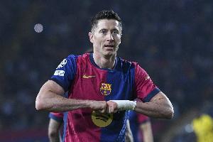 记者表示:“巴萨国王杯赛前训练,莱万多夫斯基因腿筋不适未参加训练,梯队球员托伦茨、托米、德罗参加合练。”