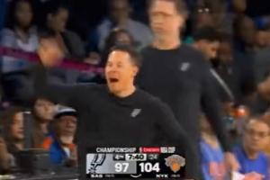 GIF-尚帕尼三分命中,但裁判吹进攻犯规