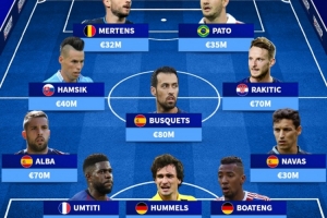 中场:哈姆西克、布斯克茨、拉基蒂奇