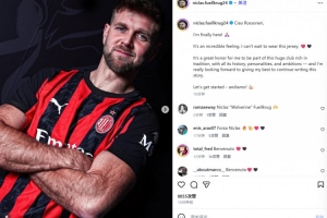 体育资讯1月2日讯 米兰已经官宣从西汉姆租借德国中锋菲尔克鲁格,后者也通过社媒晒出自己的定妆照并发文纪念。