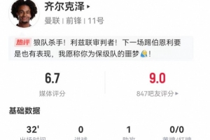 体育资讯1月4日讯 曼联在本轮英超对阵利兹联,齐尔克泽本场数据如下: