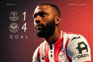 体育资讯01月05日讯 英超第20轮,布伦特福德4-2客胜埃弗顿,队内前锋伊戈尔·蒂亚戈上演帽子戏法,是球队取胜的最大功臣。