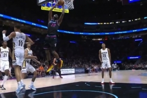 GIF-维金斯走底线突破完成双手滑翔暴扣