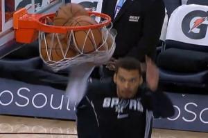 文班此前在参加一档播客节目中曾讲过一个故事,他表示自己在14岁的时候就曾一脚将卡在篮筐上的篮球踢了下来。