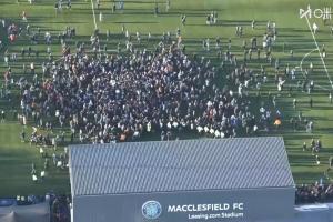 赛后第一时间麦克尔斯菲尔德球迷涌入场内,疯狂庆祝。