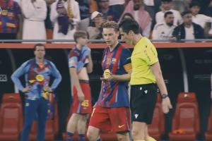 第50分41秒贡萨洛·加西亚破门,此时抱怨的变成了巴萨队长德容,穆努埃拉说道:“弗兰基,情况是这样的,一开始补时3分钟,每个进球加1分钟。维尼修斯进球后加1分钟,你们又进了一个,再加1分钟,现在要再加1分钟。”