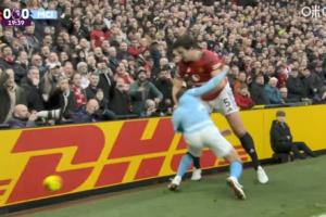 体育资讯01月17日讯 曼市德比第20分钟,马奎尔护球出底线,B席逼抢下两人双双倒地。