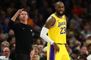 湖人队记Trevor Lane发文点评道:“半场结束时湖人队领先猛龙队1分,雷迪克排出了一个有趣的阵容:斯玛特、范德比尔特、詹姆斯、蒂米和艾顿,这套阵容在第二节开局打出了一波高潮。我非常喜欢这套阵容展现出来的活力。”