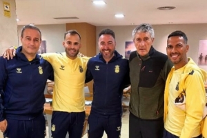 本轮西乙联赛,拉斯帕尔马斯1-4不敌桑坦德竞技暂列积分榜第三位,前国安主帅塞蒂恩受邀现场观战,他还与拉斯帕尔马斯球员赫塞、比埃拉等人合影留念。