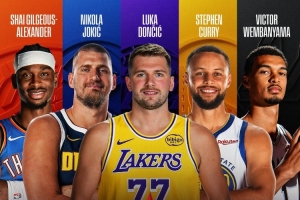 2026年度NBA全明星赛先发阵容公布,西部东契奇、亚历山大、库里、文班亚马、约基奇;东部布伦森、坎宁安、杰伦·布朗、扬尼斯、马克西。其中东契奇加盟湖人为自己带来了生涯首度票王的荣耀。