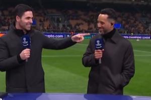 体育资讯01月22日讯 欧冠3-1客胜国米赛后,阿森纳主帅阿尔特塔在评述席与沃尔科特、鲁尼互动。