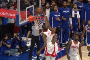 今天结束的一场NBA常规赛,76人加时128比122击败火箭。在这场比赛中,第四节最后时刻曾出现一次严重误判,马克西突破上篮遭遇杜兰特钉板盖帽,但是慢镜头回放显示杜兰特这球是干扰球了,之后双方都没有再得分,两队以115平的比分进入加时赛。