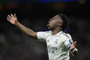 中场休息后,皇马以全新面貌开局,尽管没有换人,但有了更多的决心和更快的节奏,这种节奏和空间优势对维尼修斯有利。在第47分钟,维尼修斯在左边路突破下底,随后传中被挡了一下,但姆巴佩将球打进球门,皇马1-0领先。