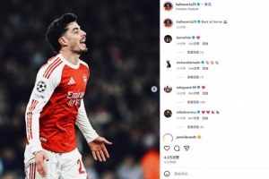 阿森纳也在欧冠的联赛阶段保持8战全胜。哈弗茨也在赛后通过社媒晒出自己的庆祝照,并配文:“回到主场🏟️”。