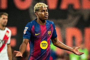 体育资讯11月10日讯 巴萨在西甲客场上半场3-2领先塞尔塔,亚马尔取得进球。
