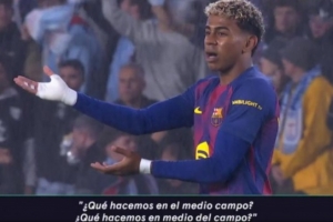 根据Movistar镜头显示,被塞尔塔攻入他们的第一球后,亚马尔显得有些不满,他向队友们问道:“我们的中场在干什么?”随后,他与一些队友进行了交流,试图找到改进的方法。类似的情况在比分变成2-2后再次出现,DAZN的镜头似乎捕捉到了亚马尔似乎在提醒队友们防线压得太靠上,应该稍微往后退。